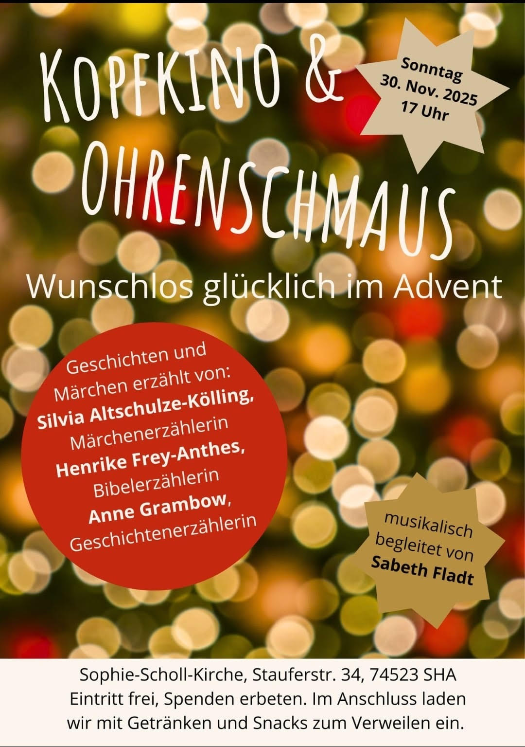 17.00 Uhr, Sophie-Scholl-Kirche, Stauferstraße 34 Der Eintritt ist frei, Spenden fürs stationäre Hospiz sind erwünscht